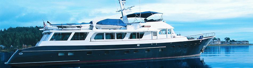 the area's unique beauty. Because of her shallow draft and powerful engines she can handle the ripping tides and river currents to explore where cruise ships cant go.
