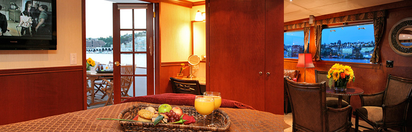 Each stateroom is comfortably furnished and equipped with its own entertainment system, and the two master